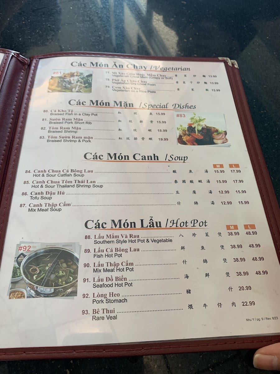 The menu here is a treasure trove of culinary delights, featuring an array of traditional Vietnamese dishes that evoke both comfort and nostalgia. From the fragrant Canh Chua Ca Bong Lau (hot and sour catfish soup) to the indulgence of Hu Tieu Mi Tom Cua (a sumptuous shrimp and crab meat egg noodle soup), each dish is crafted with passion and dedication. Dive into the savory Bun Nuoc Leo, brimming with generous portions of pork, fish, and shrimp complemented by vibrant veggies. Each spoonful is an exploration of flavor—refreshing, hearty, and utterly satisfying.